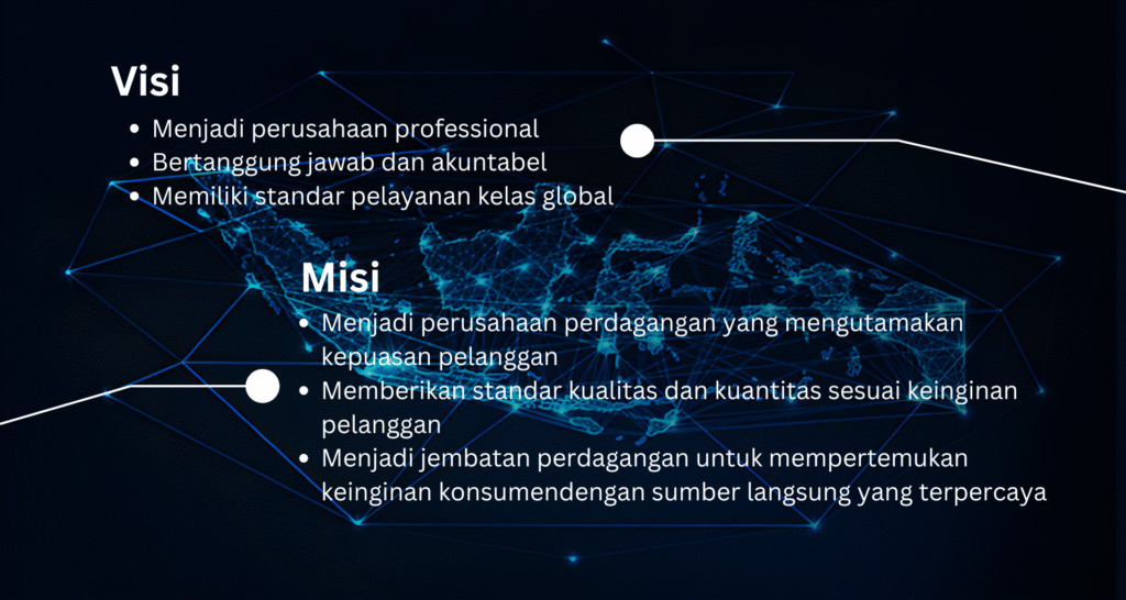 Berdiri di tahun 2019 yang di bentuk dan di dirikan oleh putera yang berasal dari pulau Jawa dan Kalimantan, kami bertekad untuk menjadi perusahaan perdagangan yang professional, akuntabel dan memiliki standar kelas global.